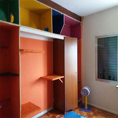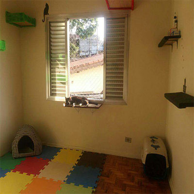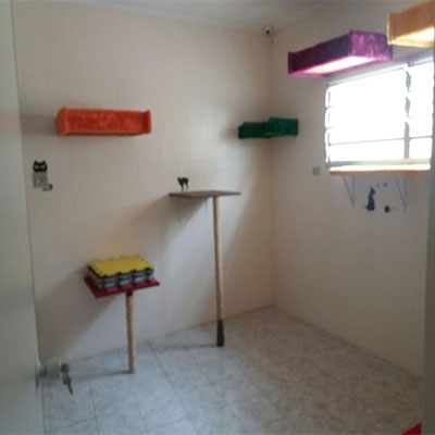 Todos os quartos são decorados com caminhas, E.V.A, arranhadores de sisal e carpete e repleto de brinquedos para entretenimento e diversão do seus gatinhos.